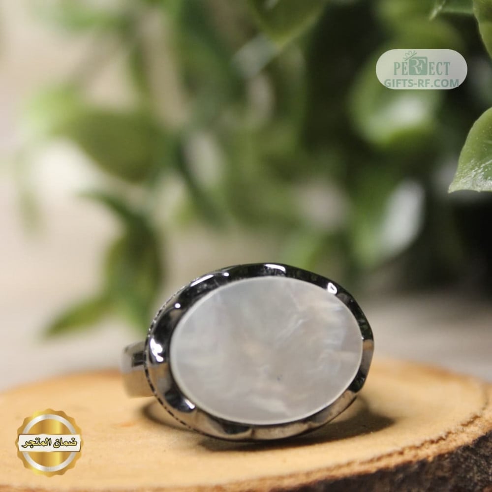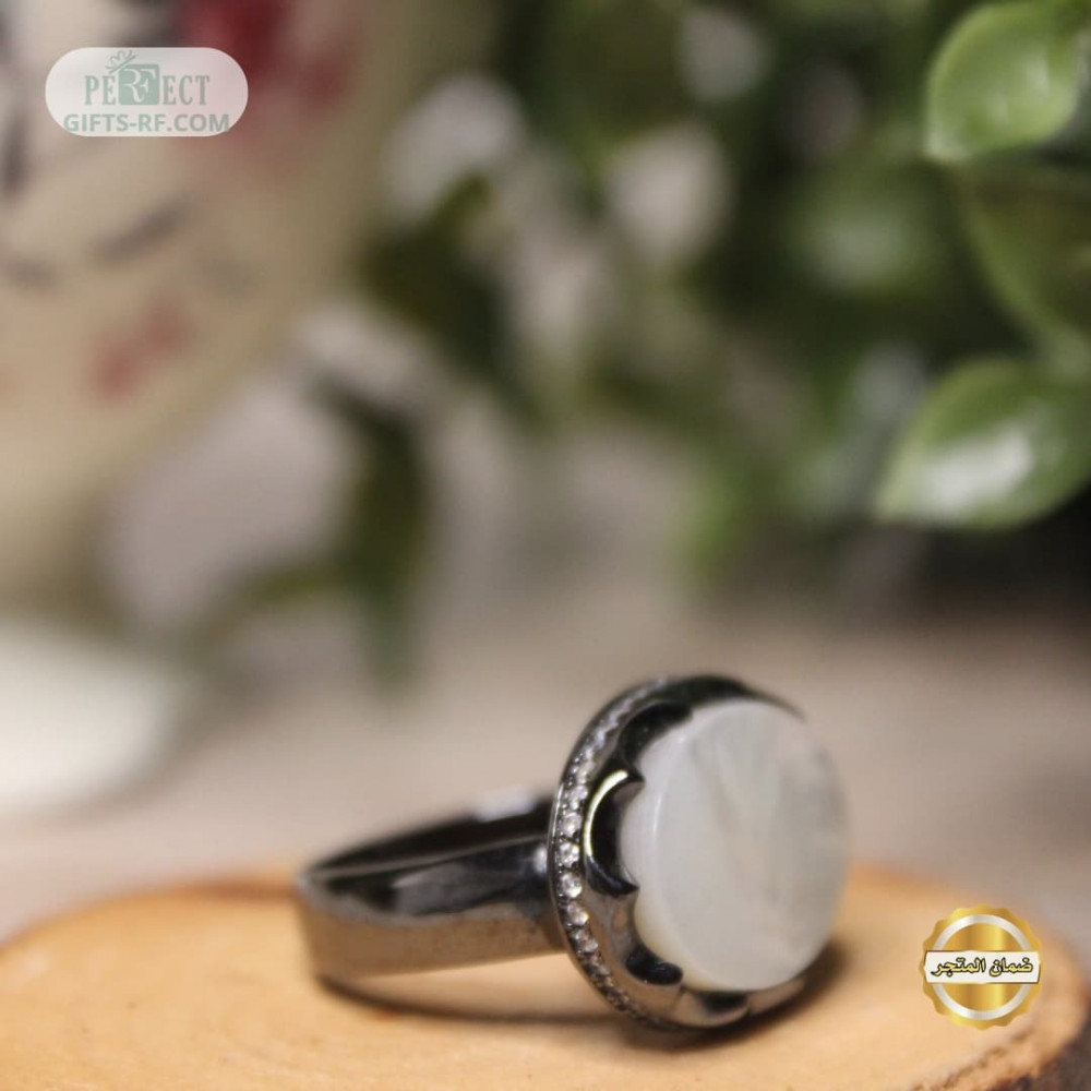 • المكونات: فضه وحجر طبيعي قابل للكتابه عليه ليزر + مع فصوص زركون حول الخاتم.