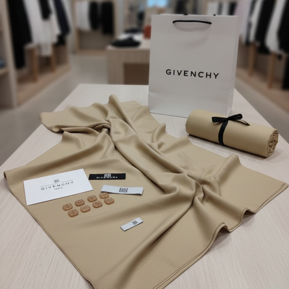 • هدية متكاملة: يأتي القماش في تغليف فاخر وأنيق يحمل اسم الماركة، مع جميع الملحقات الأصلية (الأزرار، شعارات جفنشي)، مما يجعله هدايا جاهزة ومثالية للمناسبات الخاصة.